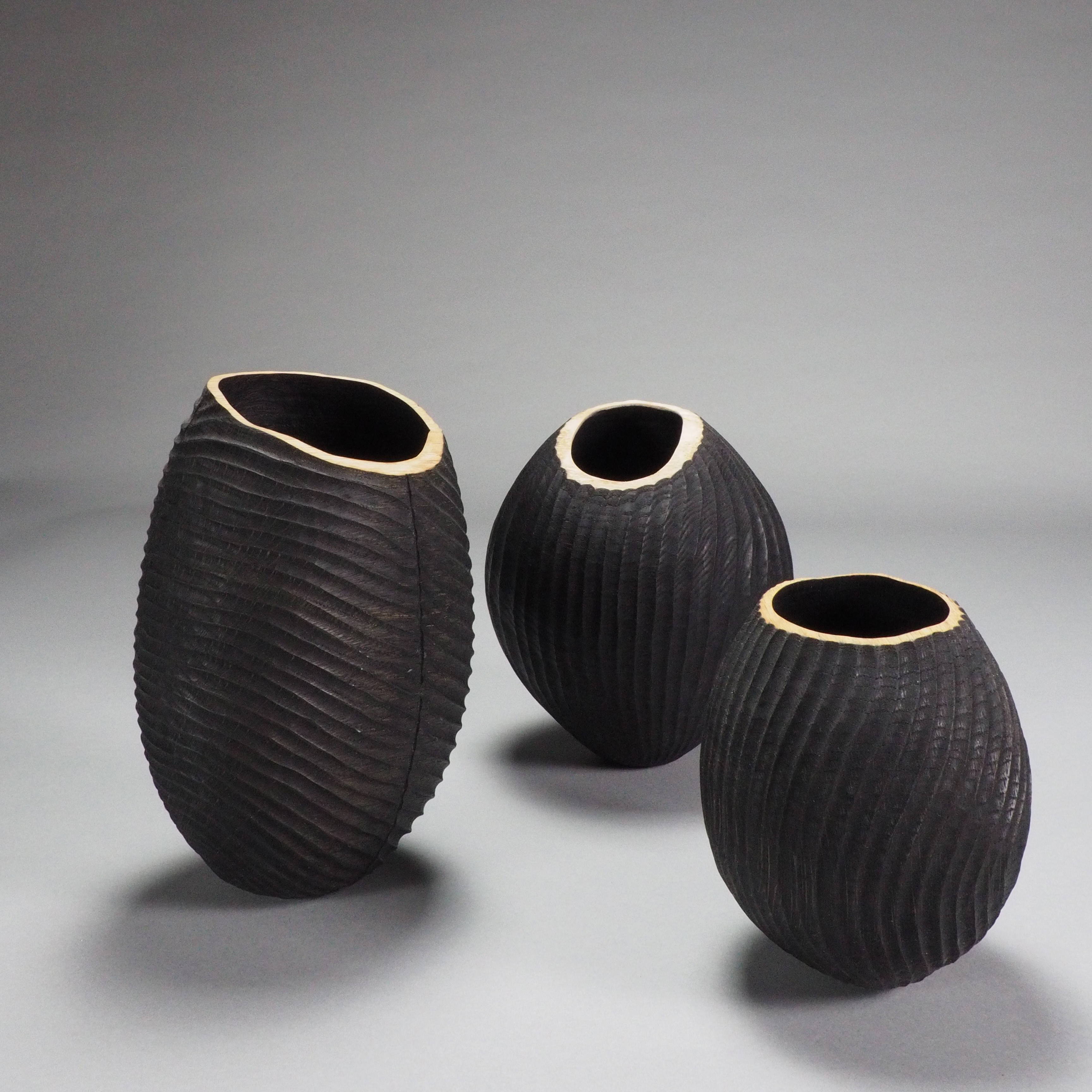 Depuis 2020, son travail s’oriente vers la sculpture de moyens et grands formats. La création à laquelle il s’adonne s’inscrit dans une démarche contemporaine qui respecte les valeurs traditionnelles du métier et se caractérise par l’emploi de techniques essentiellement à la main. Les créations de Maxime se caractérisent par un jeu sur les effets de texture et de lumière, il travaille les courbes, recherche les teintes par le feu, ou les pigments naturels. Chaque pièce de bois étant différente, l’envie pour lui de se consacrer à la création de pièces uniques est née naturellement.