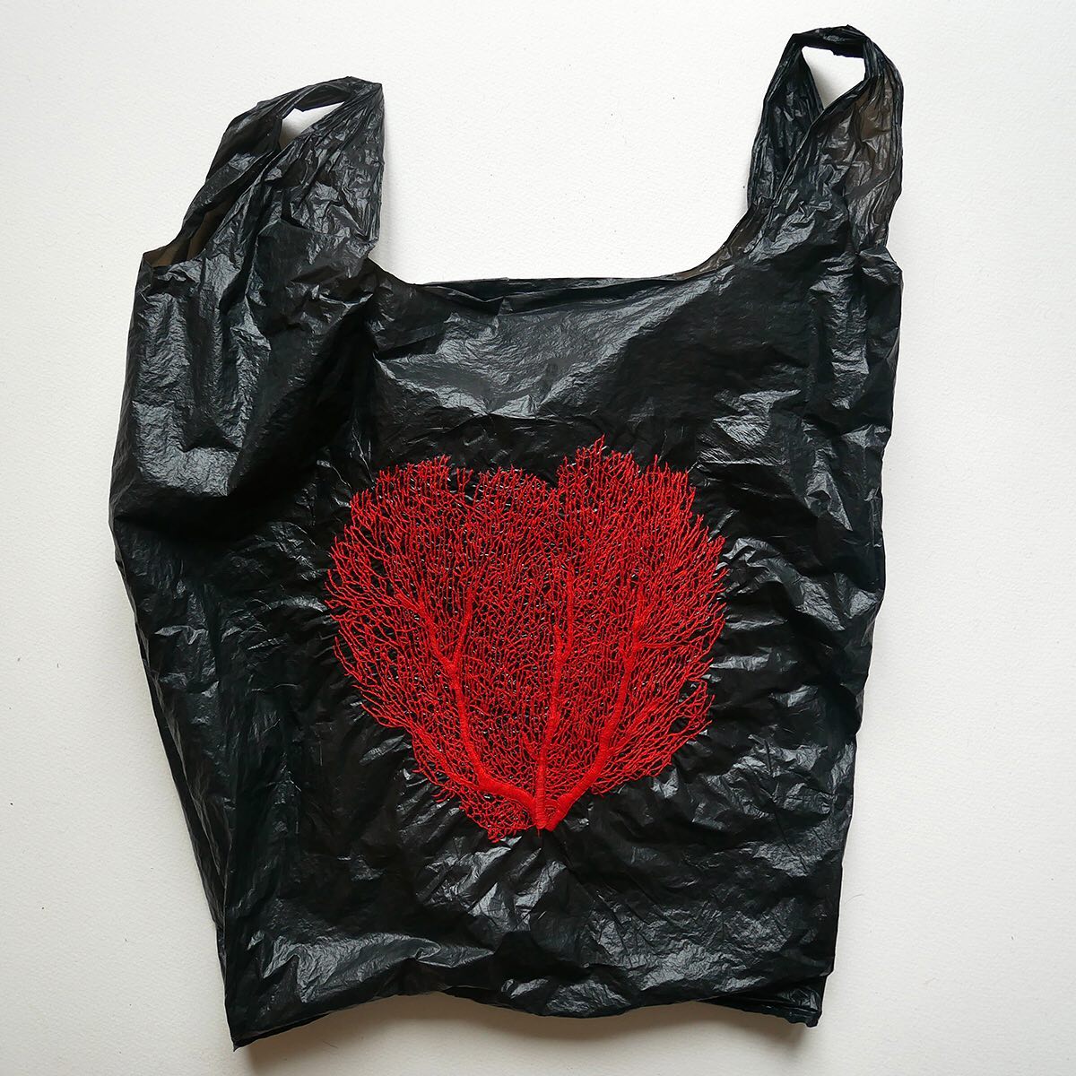 “ Je déjoue ce savoir-faire. Je confronte technique, matières et sujets pour révéler des images sur des matériaux parfois peu communs en broderie traditionnelle. Un dialogue émerge alors entre ce qui est représenté et l’objet support. La broderie fait acquérir à ces objets une nouvelle dimension artistique en les détournant de leur usage initial. Par ce geste, je réinterroge leur valeur, leur mode de fabrication et leur temps de réalisation. Je leur offre une nouvelle histoire.”