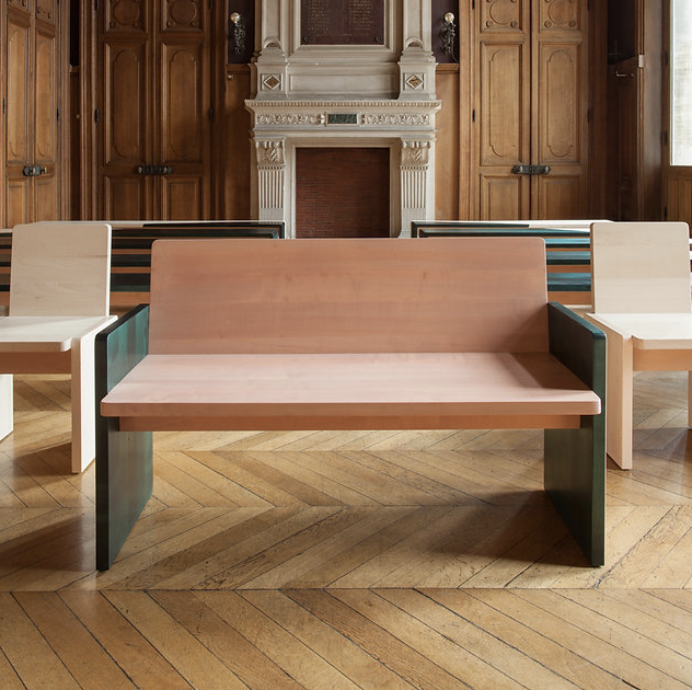 Je privilégie dans mon travail une création contextualisée : partir de contraintes stimule ma créativité et mon imagination. A titre d’exemple, lorsque j’ai réalisé le mobilier de l’Hôtel de Ville de Pantin, je me suis inspirée d’une fresque représentant une scène d’Arcadie peinte sur les murs, en en reprenant les couleurs pour créer un lien entre le décor XIXe de la salle et le parti pris contemporain du mobilier. Ce projet est d’ailleurs assez représentatif de ce qui nourrit ma créativité : la nature, la peinture et l’art sous toutes ses formes.