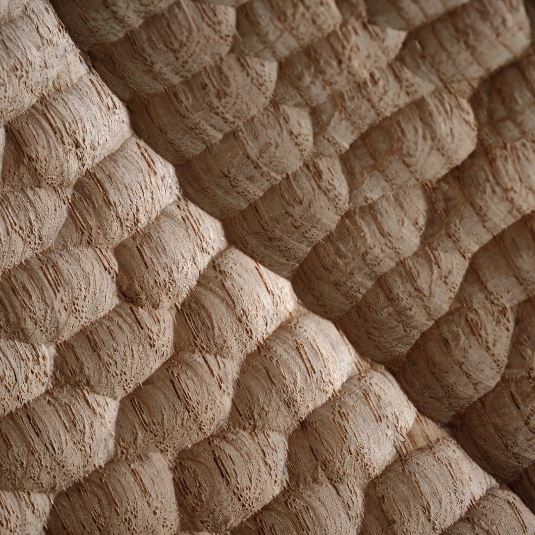 En me tournant vers la sculpture, je me suis émancipé de l’électroportatif. J’ai retrouvé le contact direct avec le bois que j’aime tant. Dans la pratique actuelle de l’ébénisterie en effet, on manipule beaucoup de machines, et le premier contact que l’on a, à défaut du bois, reste souvent le métal des outillages. Dans le tournage, c’est déjà différent, on a un contact plus direct avec la matière mais la machine reste centrale. Avec la sculpture, au contraire, j’ai trouvé un rapport presque intime à la matière, par l’outil manuel, qui est tout aussi efficace qu’un outil mécanique, à condition de savoir le manier.