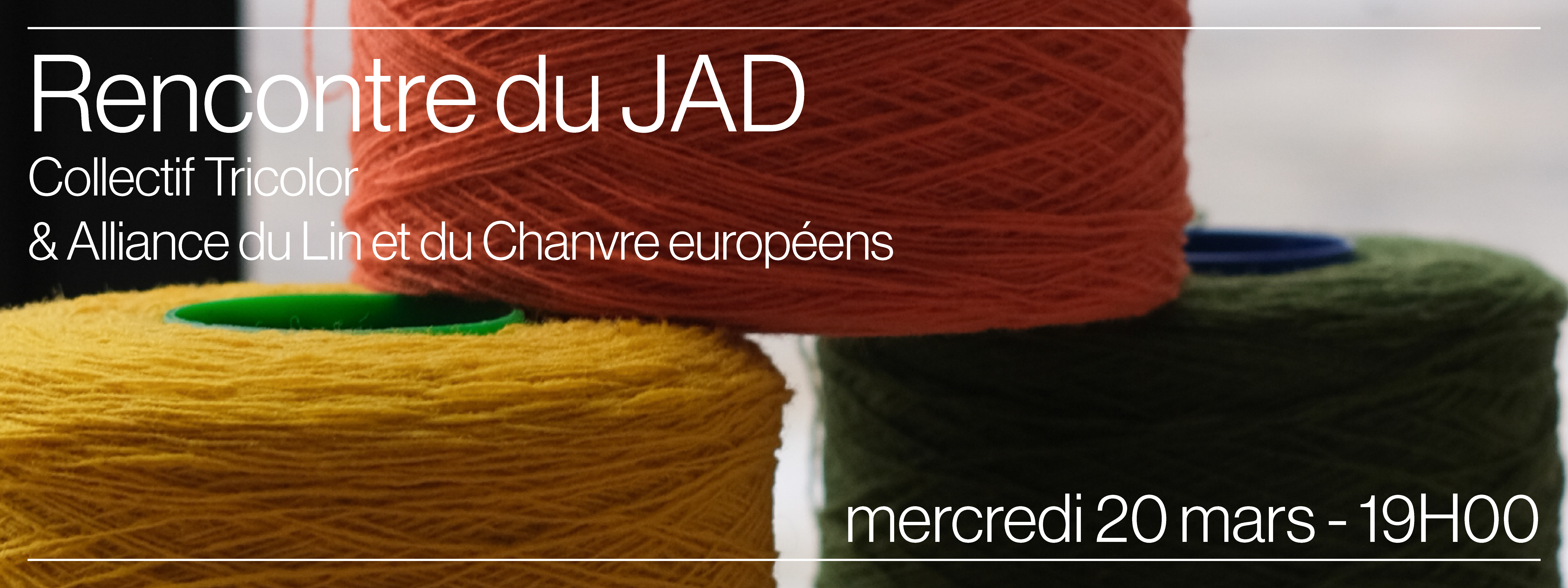 Le mercredi 20 mars à 19h00, le JAD invite Pascal Gautrand, du Collectif Tricolor et Julie Pariset, de l’Alliance du Lin et du Chanvre européens pour cette dernière conférence mensuelle dédiée à la mode durable.
